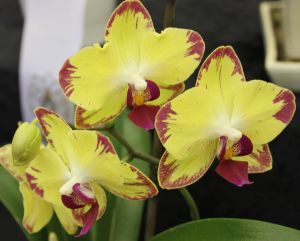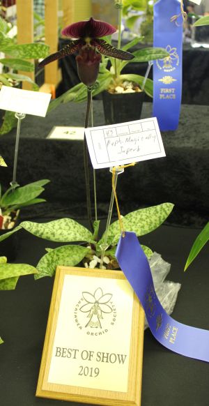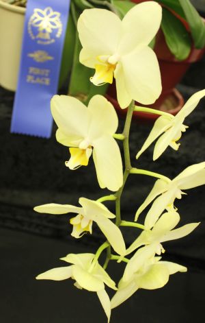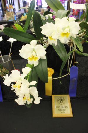 American Orchid Society(AOS) judges in teams with SOS members and interested community members selected the best plants of each Alliance. Ribbon winners were selected for each class in the Alliance: First(blue), second(red), and third(white). The best plants of each Alliance was awarded a yellow rossette. The best plant of the show and the best grown plant received a brass plaque. Very exceptional plants may receive a further AOS award such as the Award of Merit (AM). |